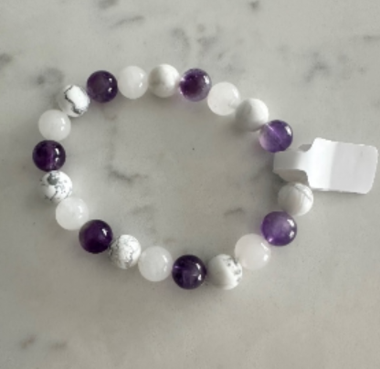 This bracelet is hand crafted by a local artisan in Albera. She only uses high quality natural rocks and gemstones. Each type of stone is said to have natural properties which enhance feelings of wellbeing, peace or creativity.