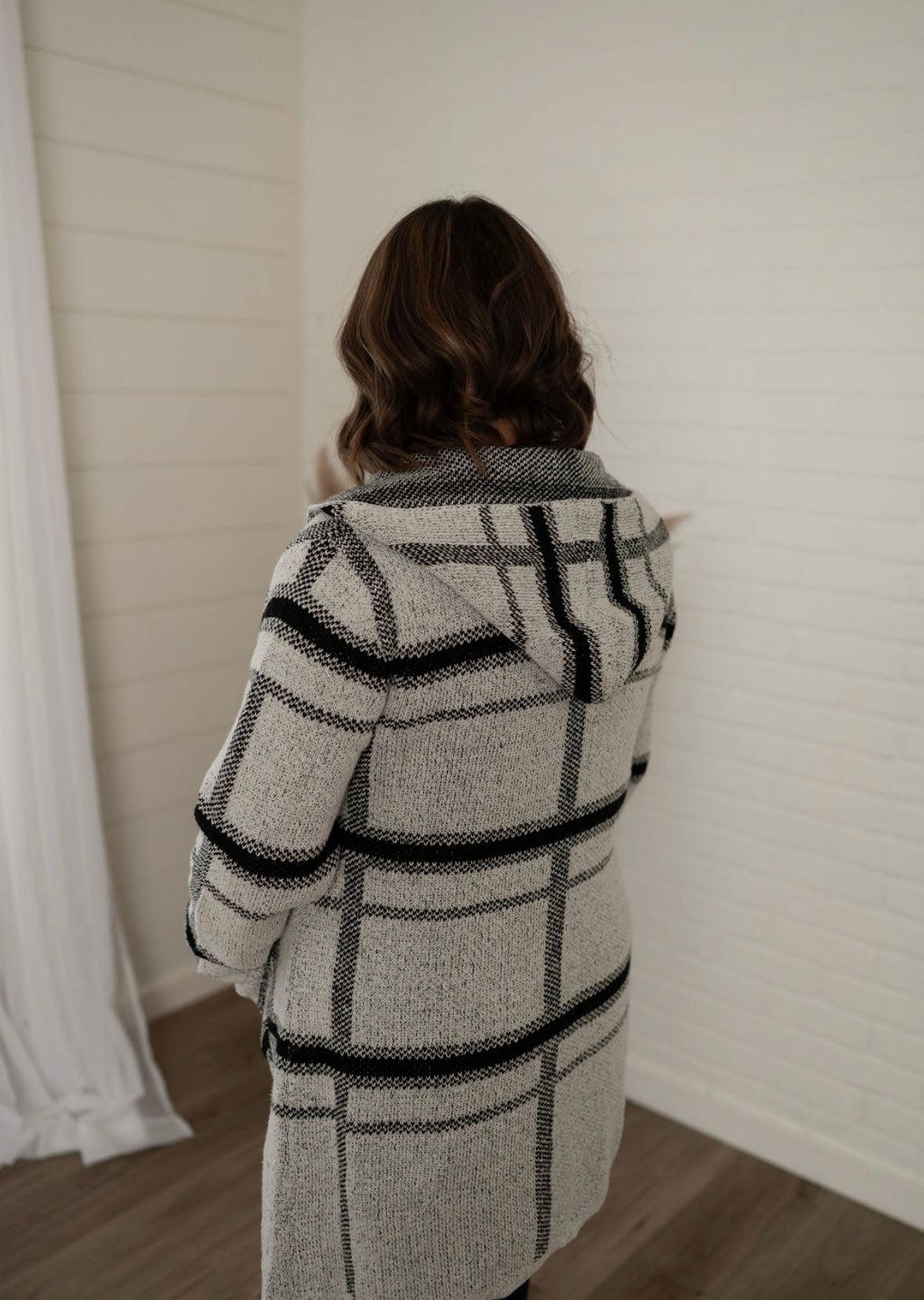 Stay cozy and stylish with our innovative hooded cardigan. Made with medium weight fabric, this cardigan is perfect for layering during the colder months. Its longer length adds a touch of elegance to any outfit, while the plaid pattern adds a pop of color and texture. Whether you're running errands or lounging at home, the Bobbi Cardigan is the perfect addition to your wardrobe.