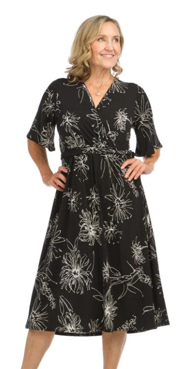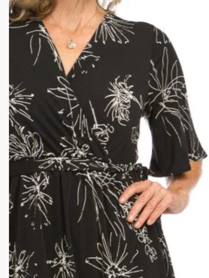 This Black Floral Dress is the perfect addition to your wardrobe. The beautiful floral pattern adds a touch of femininity to the dress, making it perfect for any occasion. The lightweight material makes it comfortable to wear, while the mid-length sleeves provide coverage and versatility. The dress falls at a flattering mid-calf length, making it suitable for both casual and formal events. The defined waistline adds structure and accentuates your figure, giving you a flattering silhouette.