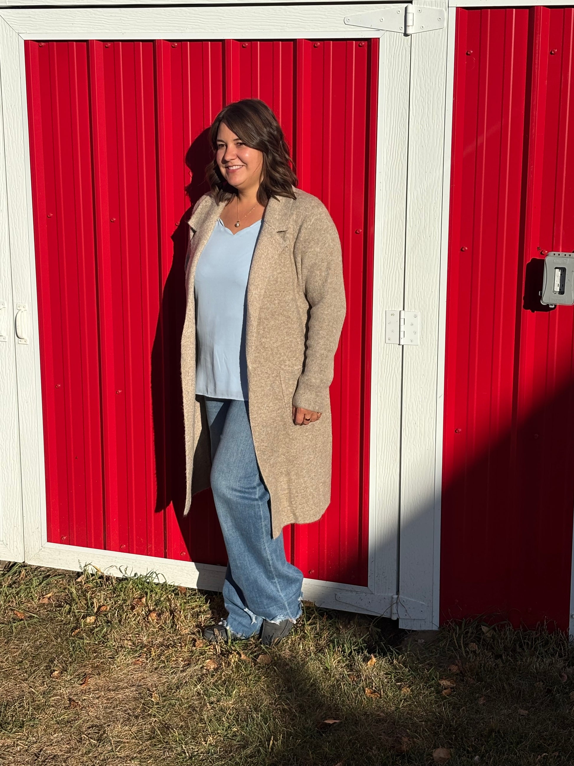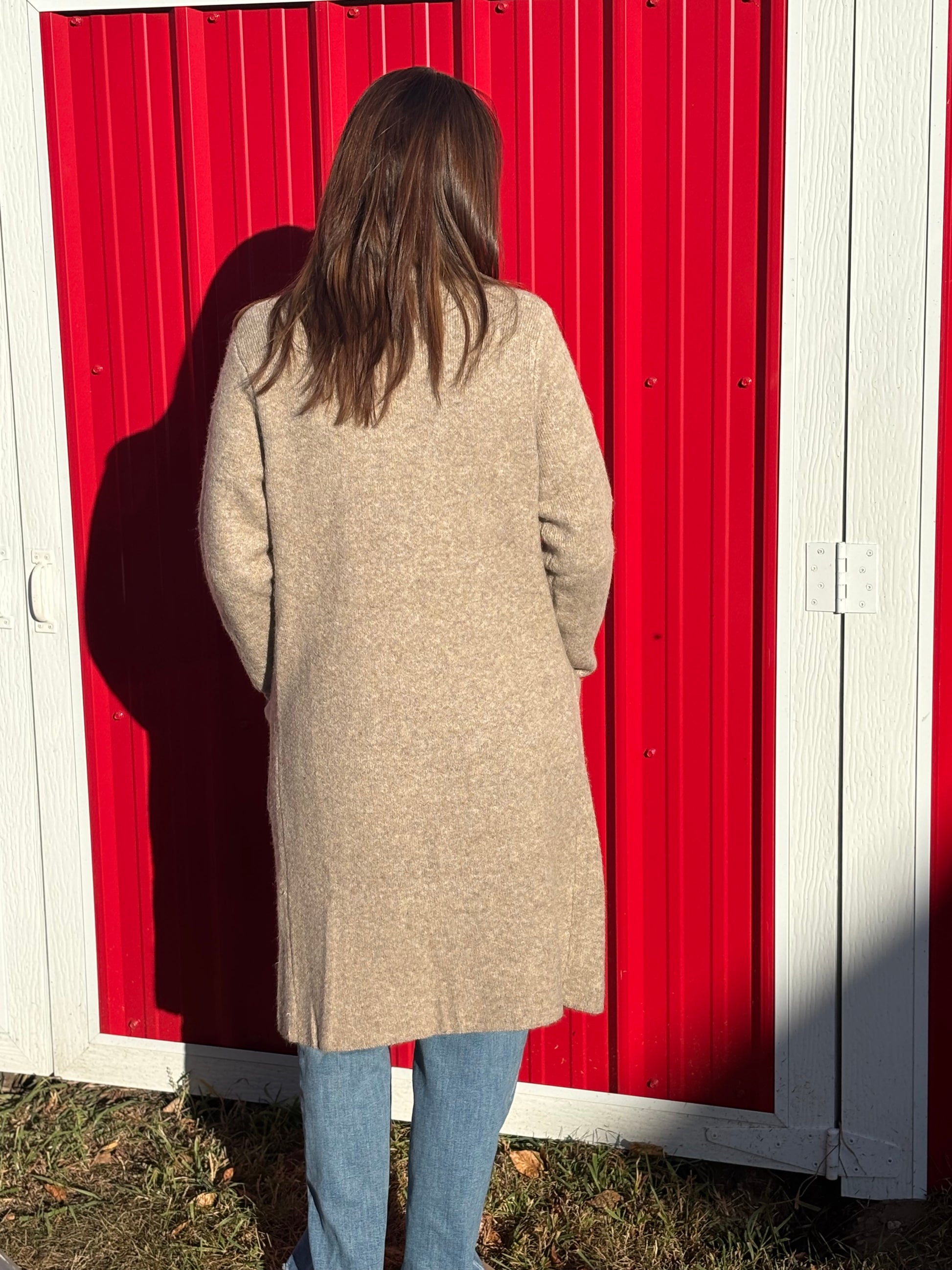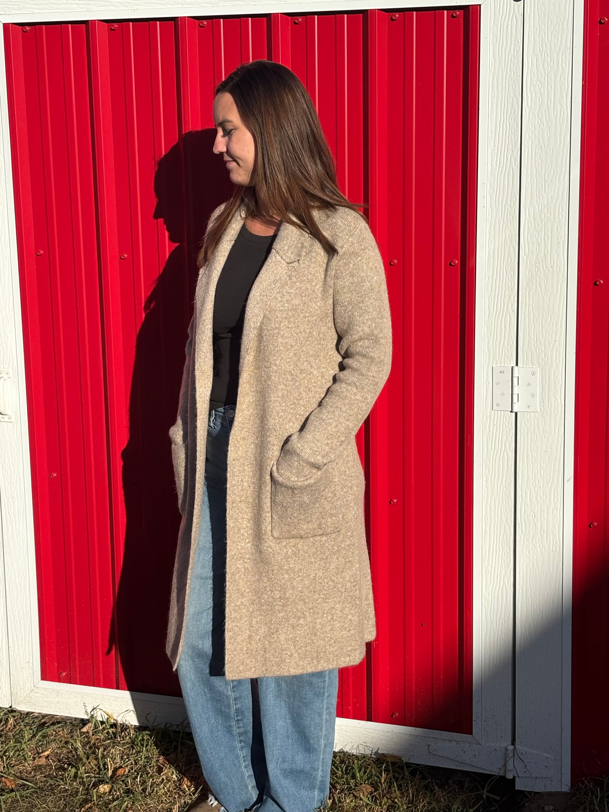 Wrap yourself in effortless sophistication with the cabmen Coatigan this timeless piece blends the structure of a coat with the cozy comfort of a cardigan, making it a must-have layering essential. A wardrobe classic you can pair with jeans and ankle boots for a casual chick look, or layer over a dress for a elevated evening outfit.