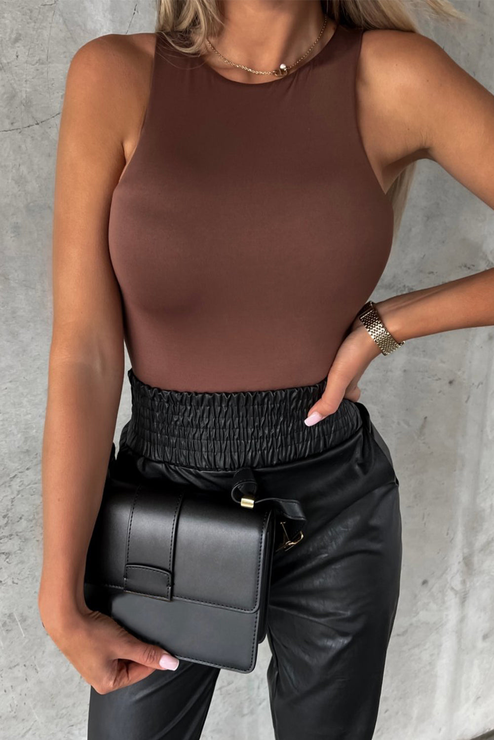 This solid bodysuit pairs perfectly with any pants or skirts. It has a crewneck, sleeveless design and a bodycon fit. The fabric is of high elasticity and gives great comfort, flattering your shape, giving you a sexy silhouette.