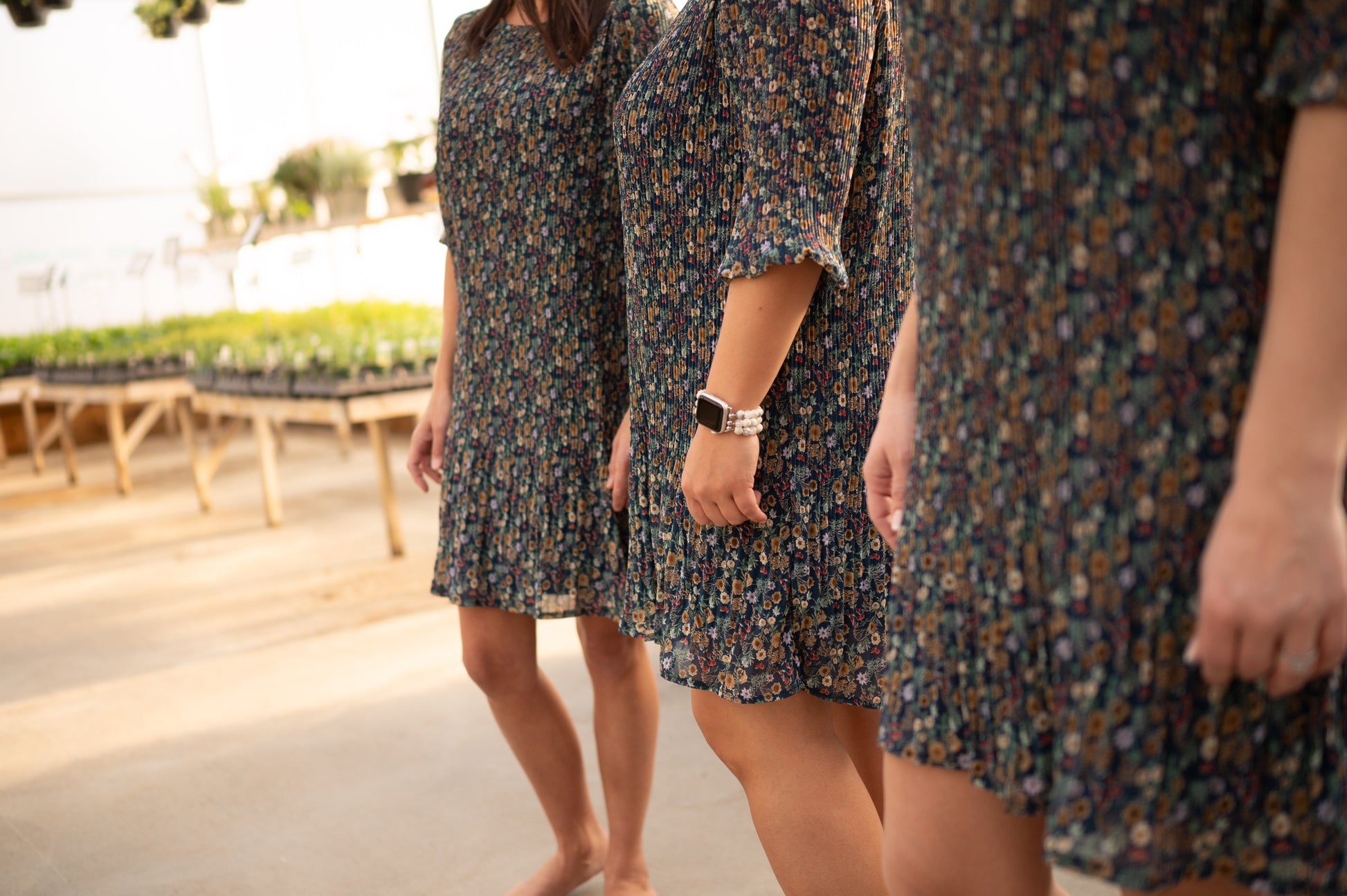 Introducing the Morning Meadow Dress, a must-have addition to your wardrobe. This dress is the perfect combination of style and comfort, making it suitable for any occasion. The 3/4 length sleeves provide just the right amount of coverage, while the lightweight fabric ensures you stay cool and comfortable all day long. The pleated design adds a touch of elegance, and the knee length makes it versatile for both casual and semi-formal events. The beautiful flower design adds a pop of color and femininity, and the boat neck collar adds a classic touch.