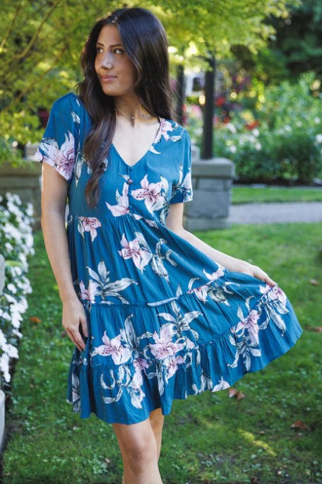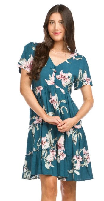 Introducing our versatile and stylish Chloe Dress, perfect for any occasion. This dress features a beautiful floral print and a tiered design that adds a touch of femininity. The button front adds a classic touch, while the v-neckline and short sleeves make it a comfortable and flattering choice.