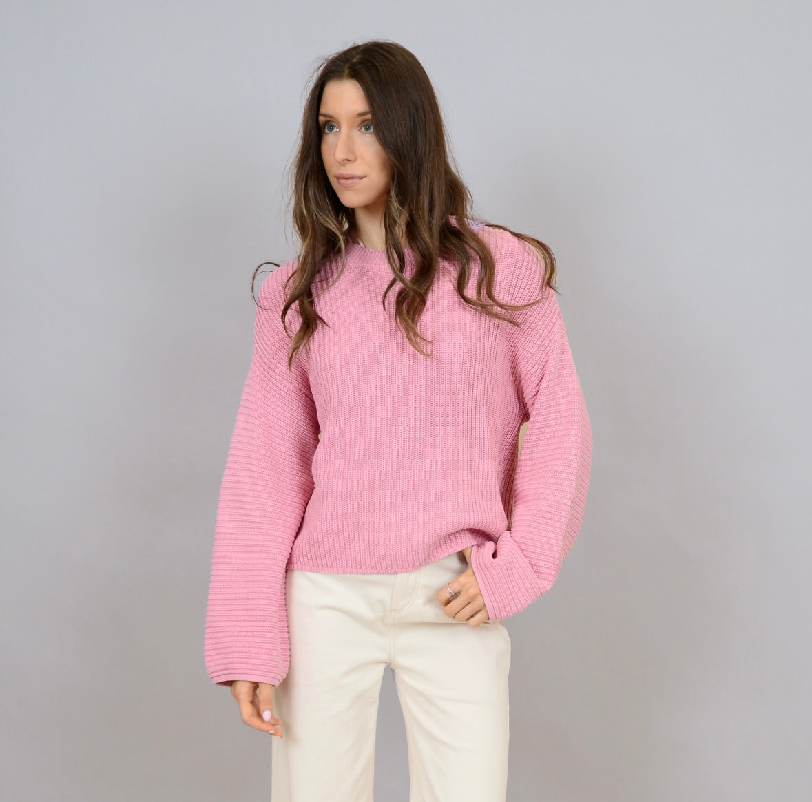 This versatile piece features a classic crew neck and long bell sleeves, adding a touch of elegance to any outfit. The lightweight knit design makes it perfect for any season, whether you're dressing it up for work with a pair of black pants or keeping it casual with jeans for a day out.