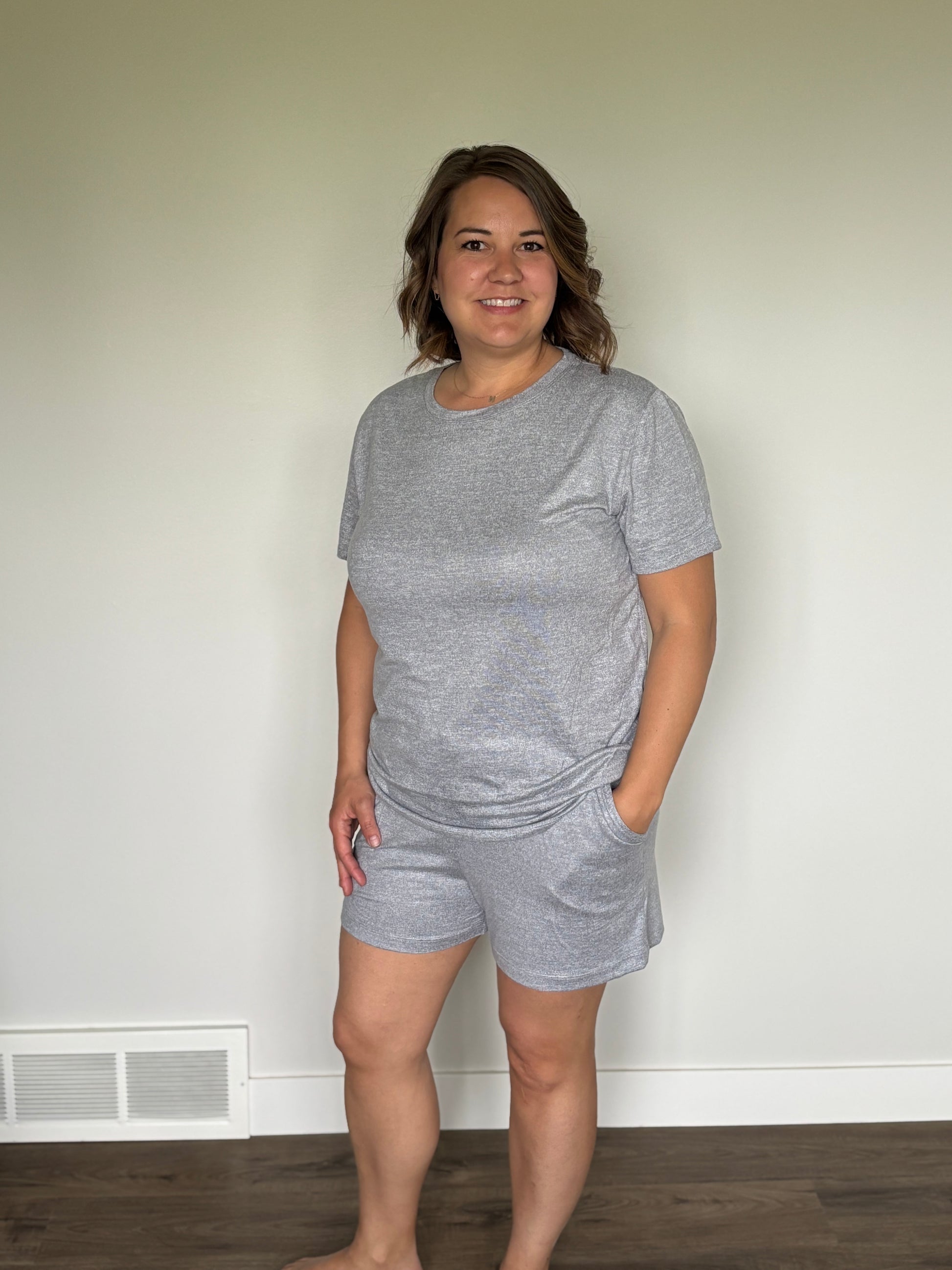 Slip into ultimate comfort with our Serenity Lounge Set. Made from a buttery-soft, breathable knit, this neutral-toned two-piece set includes a relaxed-fit short-sleeve top and cozy drawstring pants with deep side pockets. Perfect for lounging at home or running quick errands in style. The light oatmeal color flatters every skin tone and adds a touch of understated elegance to your downtime wardrobe.