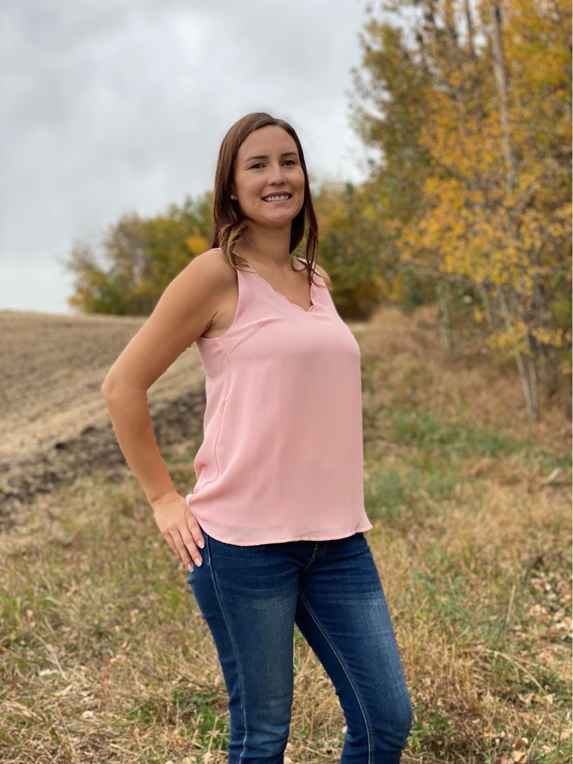 This is the best selling scalloped neck cami, but better than ever! It has the same great neck detail making it feminine and interesting, but has thicker straps making it easier to wear on its own, without having to worry about your bra straps showing. This tank is beautiful by itself, but also pairs well with a blazer for the office, a shacket for an evening out or a cardi for running errands.