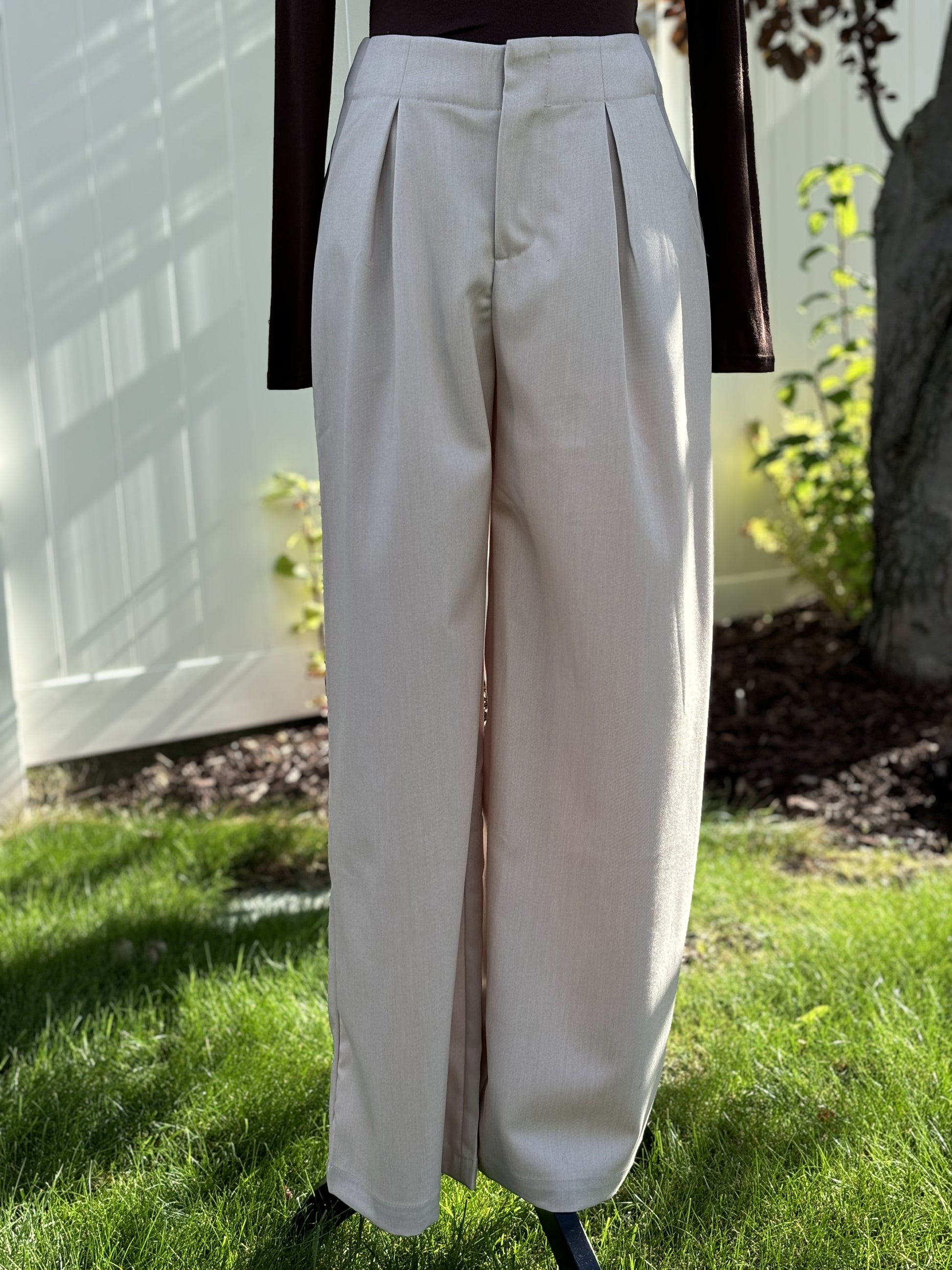 Elevate your work wardrobe with these stylish and comfortable wide leg trousers. The pleated waist adds a touch of sophistication, while the clasp closure ensures a secure fit. Made from a blend of polyester, rayon, and spandex, these pants are both durable and stretchy for all-day comfort. The wide leg design allows for easy movement and a flattering silhouette. Perfect for the office, these dress pants are a must-have for any professional woman. Upgrade your work attire with the Take Action Pleated Wide Leg Trouser.